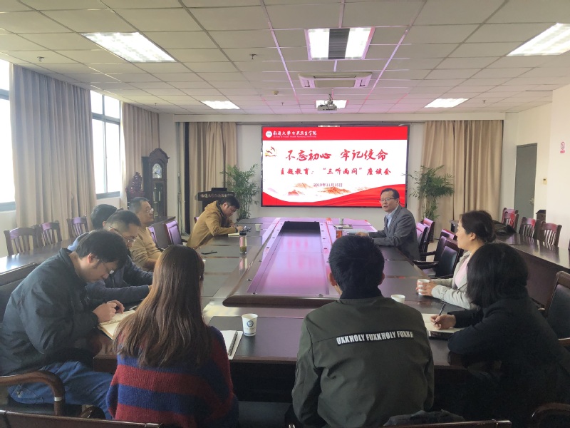 学院通过召开师生座谈交流会,听服务对象、听普通党员、听师生意见,问领导班子、领导干部存在的突出问题,问改进作风、改进工作的意见和建议。与会人员有领导班子、支部书记、普通党员、普通教师、学生党员,大家结合自己的学习体会和实际工作,就支部建设、博士点建设、实验室平台建设、仪器设备的管理、实验室改造、学生参与科研、增加高年级学生体育运动多等问题提出了各自的意见和建议。
