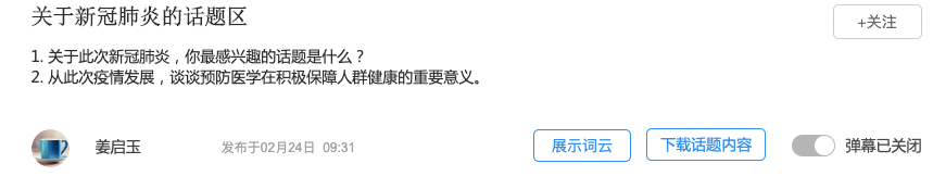 这次线上学习看到,以前在传统课堂教学的时候,不太愿意发表观点的同学们,其实都是很愿意来和老师探讨一些问题的,今后在课堂教学中要更多的去思索如何去调动同学们的学习热情。