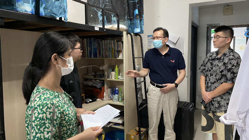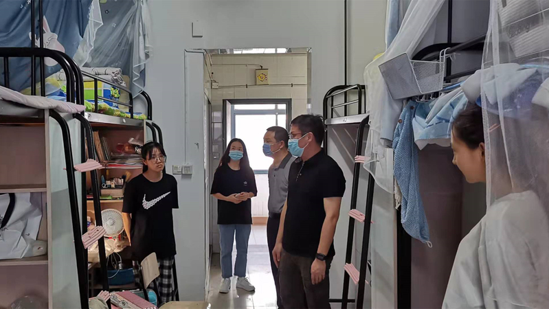 为进一步了解学生返校情况,院党委书记曹勇、副院长李百胜、院党委副书记、副院长顾璟率学生工作全体辅导员走进学生宿舍,关心同学们的学习状态和生活情况,并对宿舍安全卫生情况进行了检查。走访过程中,曹勇与学生们亲切交谈,关心了解学生们新学期学习计划制定情况、考研意向和准备情况,并向同学们提出了三点建议:一、养成健康作息,认真学习不懈怠;二、做好个人防护,疫情期间守规定;三、鼓励积极考研,青春奋斗正当时。受访学生纷纷表示,要加强宿舍文化建设,努力营造积极向上、团结奋进的环境。