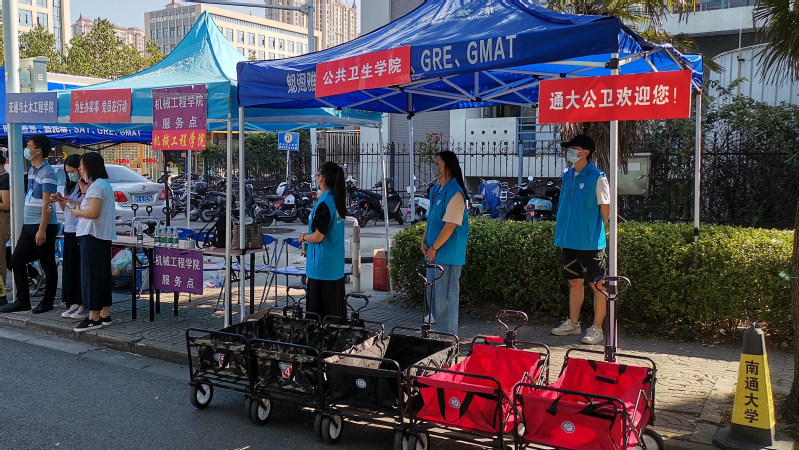 在学校北一门设置的志愿服务点和行李寄存处,学院领导、辅导员和“江海健康青年学习社”志愿者们不辞辛苦,积极开展返校志愿服务。他们或站在校门口迎接返校同学,或指导返校同学扫码进校,亦或主动帮助返校同学将行李运送至对应园区……志愿者们用满腔热情和实际行动展现了公卫学子的青春风采,更将志愿服务精神体现得淋漓尽致。