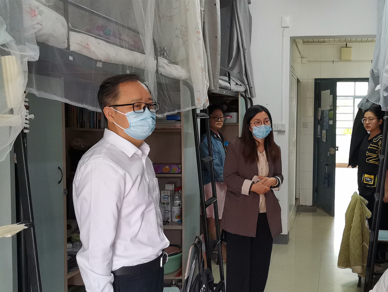 在宿舍,学院领导进行了严密细致的安全检查。检查过程中,史加海对学生宿舍安全提出三点要求:一是保障健康安全,杜绝聚集性活动,严格落实疫情防控要求;二是注重消防安全,严禁违章电器与明火,增强消防安全意识;三是谨防网络诈骗,警钟长鸣,坚持防诈反诈。