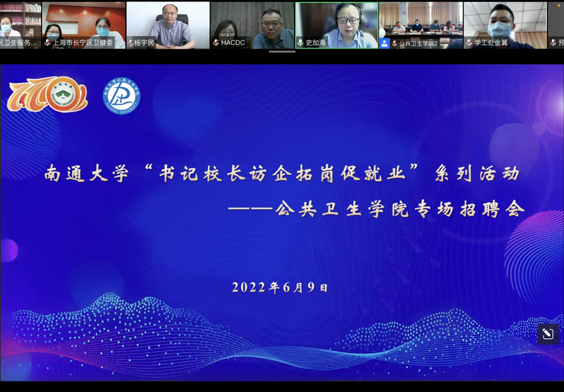 会上,上海市长宁区卫生健康委员会,上海市奉贤区平安社区卫生服务中心,上海市奉贤区柘林镇社区卫生服务中心,上海市奉贤区奉浦街道、西渡街道社区卫生服务中心,上海市奉贤区金惠社区卫生服务中心,江苏省疾病预防控制中心,淮安市疾病预防控制中心,泰州市疾病预防控制中心,盐城市盐都区疾病预防控制中心等9家用人单位围绕毕业生就业、薪酬待遇和职业发展等方面进行了详细阐释,鼓励毕业生为中国公共卫生事业贡献青春力量。