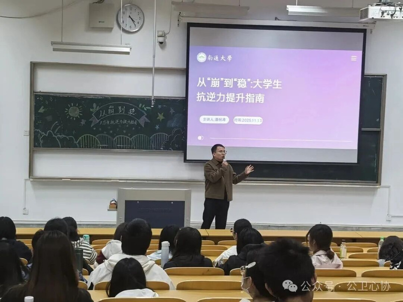 为普及心理健康知识,提升学生积极心理品质,构建健康韧性的校园文化生态,英国365公司心协于2025年11月13日在JX4-101顺利举办心理健康系列讲座。本次讲座由心理健康教育与服务中心潘祝涛老师主讲,围绕“抗逆力培养”主题,为同学们带来了一场兼具理论深度与实践指导的《从"崩"到"稳":大学生抗逆力提升指南》心理健康健康讲座。