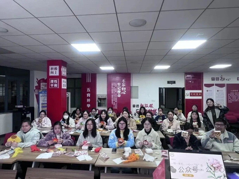没有公式与数据,没有忙碌的课业与计划,只需要闭上眼睛,专注于呼吸的起伏,感受情绪在身体里的流动——是轻松,是平静,还是藏着一丝未察觉的疲惫,都在此刻被温柔接纳,为接下来的创作做好心灵的铺垫。屏幕上的视频教程一步步拆解制作技巧,从羊毛的选取、撕拉,到戳针的角度、力度,细致又易懂;老师则在现场补充说明,重点强调“戳针尖锐,需集中注意力避免受伤”“羊毛压实力度均匀,作品才更立体”等注意事项,让即便毫无手工基础的同学,也能放心开启创作。
